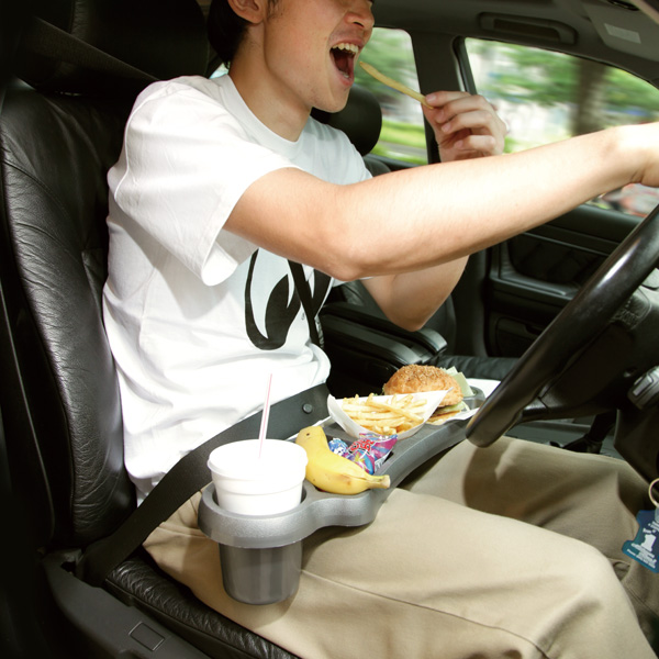 ヒザの上にこのトレーを置くと、ハンバーガー、ポテト、ドリンク、ナプキンなど、