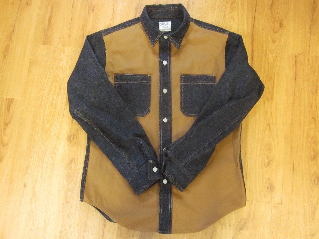 インディゴをベースにブラウンとチャコールグレーの生地で切り替えたワークシャツです。