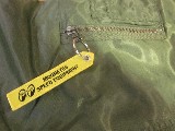 左袖のジップには、パラシュートなどに取り付けられている "REMOVE BEFORE FLIGHT" タグが付いています。